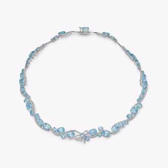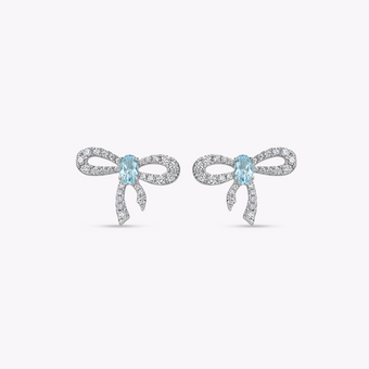 Kiki introduced blue topaz in the early 90s, and this has become arguably her most popular gemstone. A soft sky-blue hue is her chosen colour, and many customers (including brides searching for their something blue) reach for this gem time and time again due to its beauty and versatility. Kiki’s first ever design included a sophisticated bow motif, so the blue topaz pieces in this collection honour this legacy with diamond ribbons running throughout.
