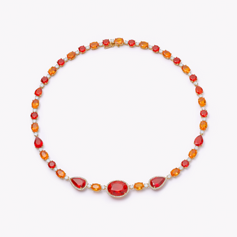 Fire opal represents the pioneering introduction of exciting and lesser-known gemstones to the business, which began with Kiki’s 2014 collection ‘Playing with Fire’, where she introduced fire opal to the brand for the first time. There is only one known source of fire opals in the world, Mexico, and the gems get their orange glow from traces of iron oxide as they grow over millions of years. Said to intensify the passionate feeling of love and bring inner peace, the striking fire opals in these pieces are enhanced by their diamond halos.