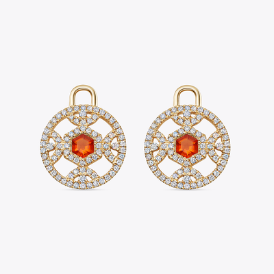 Firefly Hexagon Cut Fire Opal and Diamond Detachable Earrings