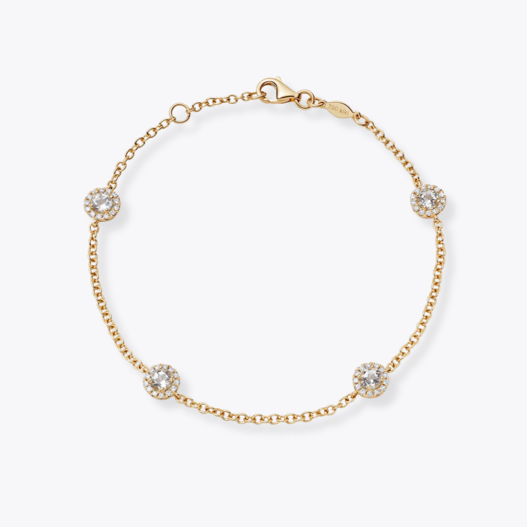 Grace White Topaz and Diamond bracelet in 18ct Yellow Gold with four mini clusters. (White Topaz is approximately 0.67ct and Diamond is 0.21ct)