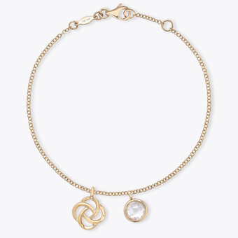 White Topaz with Rose Charm Bracelet in Yellow Gold