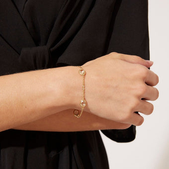 White Topaz Bow Charm Bracelet in 18ct Yellow Gold