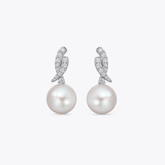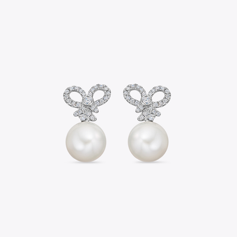 Pearl Round and Diamond Ribbon Earrings