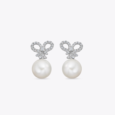 Pearl and Diamond Bow Earrings