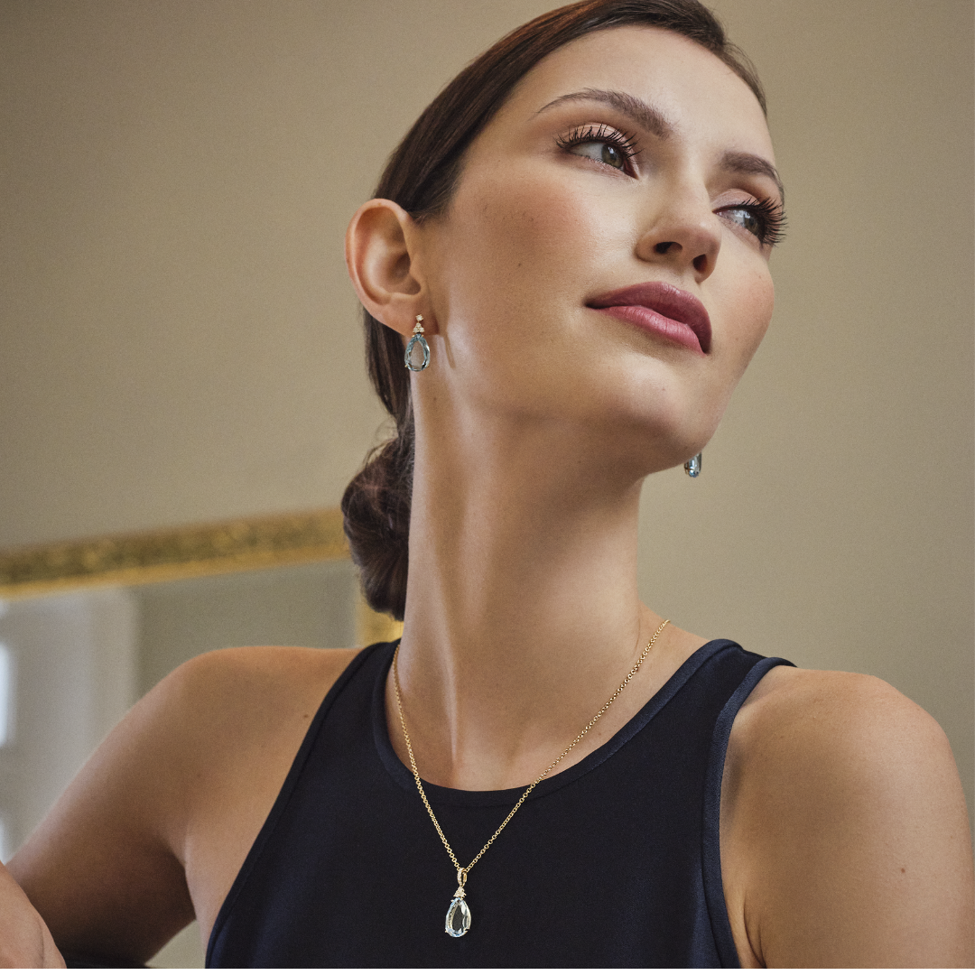 This timeless Candy pendant features a pear blue topaz gemstone set beneath sparkling diamond accents in 18ct yellow gold. The perfect way to add a radiant pop of colour to your look (diamond is approximately 0.16ct and blue topaz is 4.70ct). Chain included.