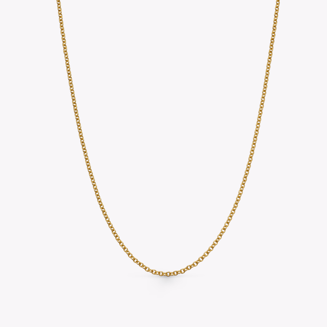 This 18ct yellow gold trace chain is 18inches with an adjustable loop at 17inches and 16inches. Perfect for any of our pendants.