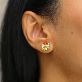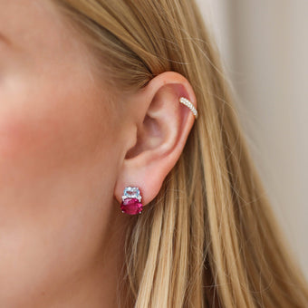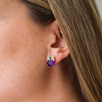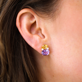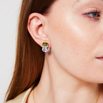Inspired by a ballet costume at the Royal Opera House, the Double Oval earrings marked the beginning of Kiki’s iconic gemstone combinations, capturing her love of colour and innovation.