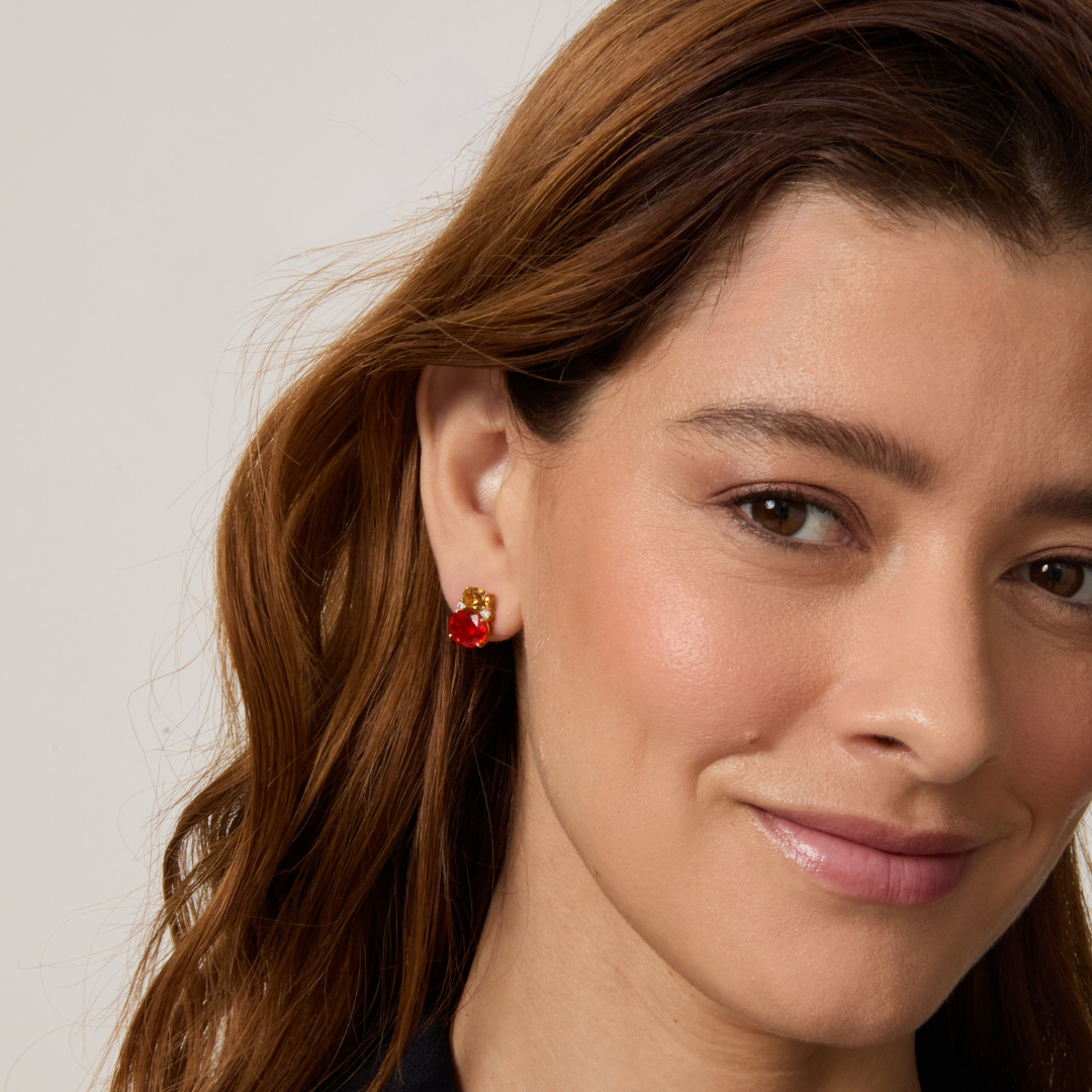 For a fun pop of colour, look no further than our double oval stud earrings. This pair features two striking fire opal gemstones complemented by dazzling citrines and diamonds, set in 18ct yellow gold (multi gemstone weight is approximately 6.50ct, diamond is 0.12ct).