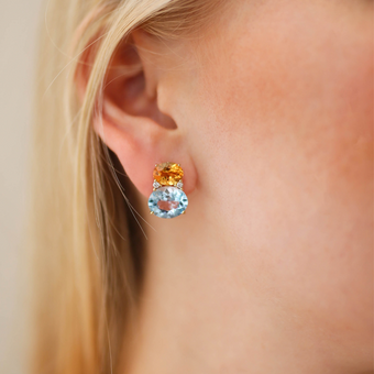 Inspired by a ballet costume at the Royal Opera House, the Double Oval earrings marked the beginning of Kiki’s iconic gemstone combinations, capturing her love of colour and innovation.