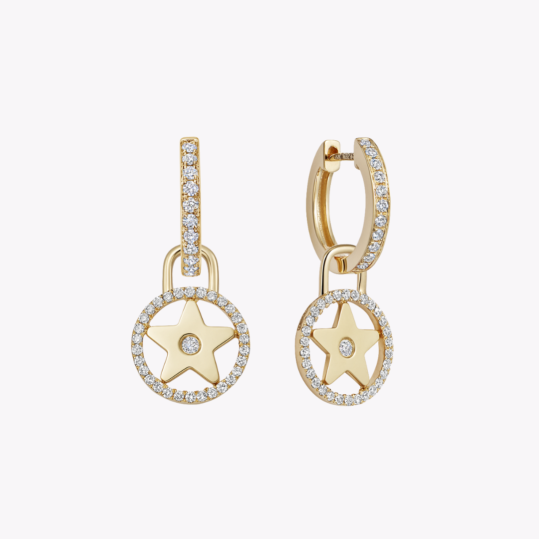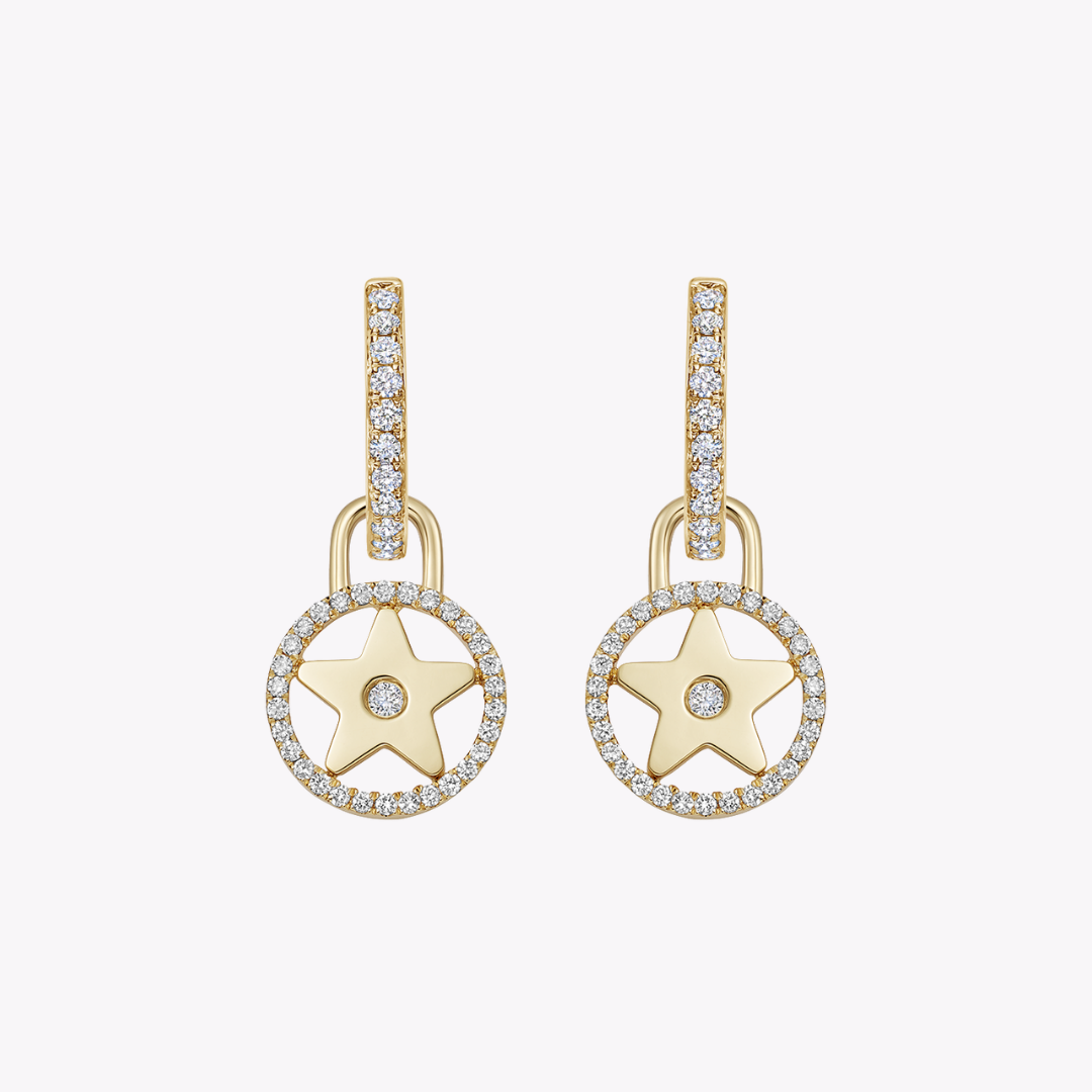 Add these diamond centre and diamond surround 'Star' drops in 18ct yellow gold to your Kiki Hoops for a playful addition to your detachable drops collection (diamond is approximately 0.23ct).