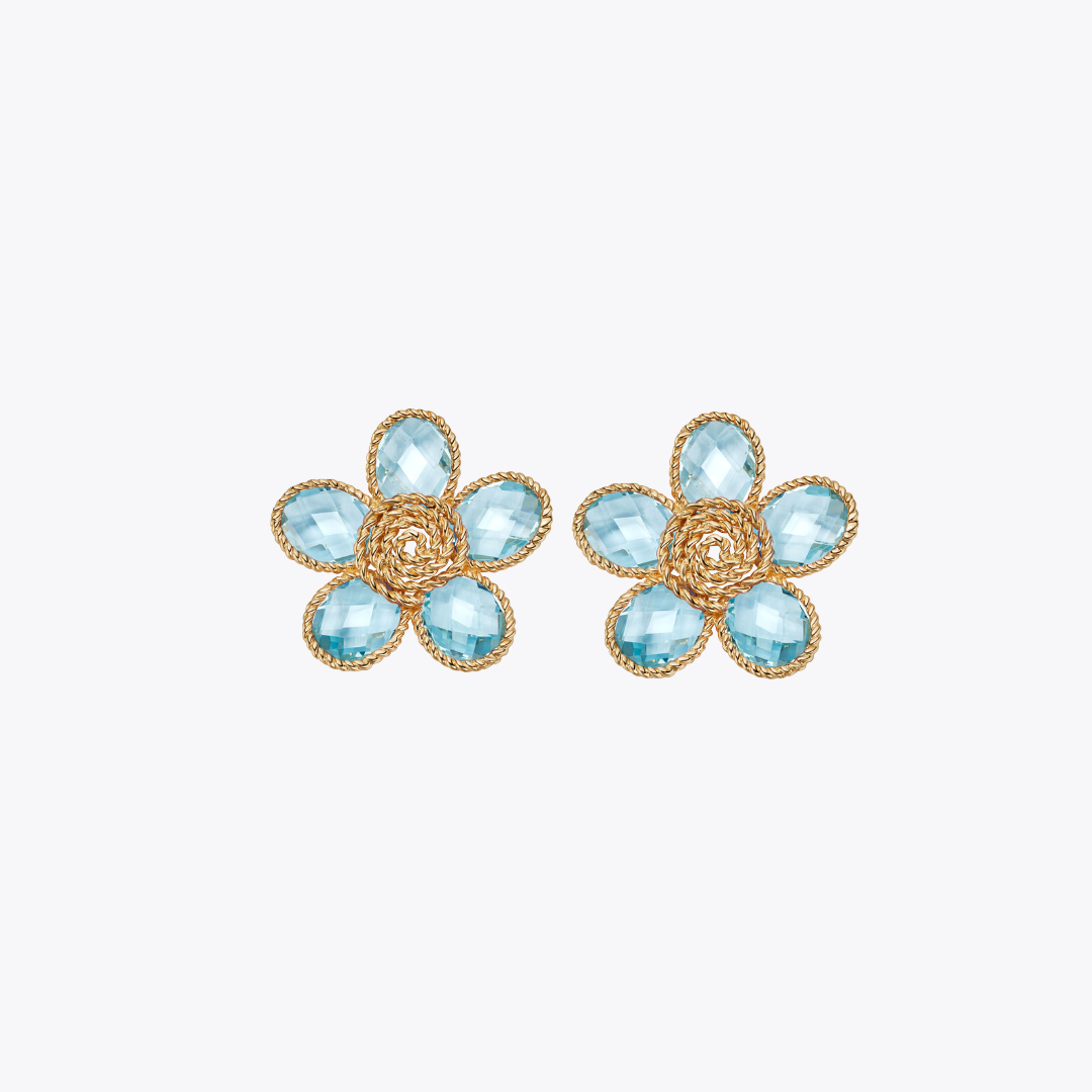 Embrace flower power with these Florence blue topaz small flower earrings in 18ct yellow gold. A fun and colourful addition to your jewellery box (blue topaz is approximately 10.00ct).