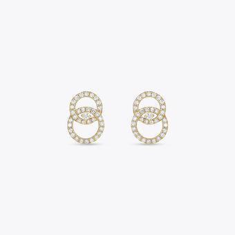Perfect for everyday wear, these beautiful 18ct Yellow Gold Interlinking Hoop Studs with Diamond Pave will bring a bit of sparkle to your day.