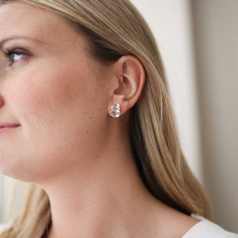 A firm Kiki favourite; these double oval stud earrings come in an array of vibrant colour combinations and are exceptionally easy and fun to wear. This pair features stunning Lavender Amethyst, Blue Topaz and Diamonds set in 18ct White Gold. (Diamond is approximately 0.12ct and Multi 6.5ct)