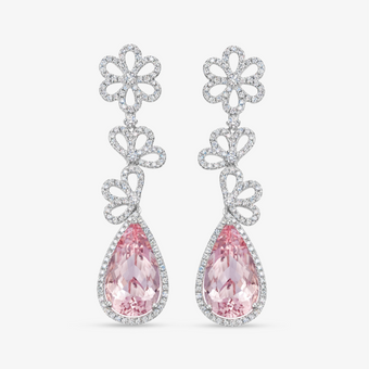 The Petals Collection is the perfect feminine ode to the much-loved tradition of creating art out of flowers. Beautiful ballet-pink morganite gemstones hang from diamond-set daisy detailing in these statement earrings, set in 18ct white gold. Perfect for your next special occasion (morganite is approximately 10.38ct, diamond is 1.61ct).