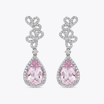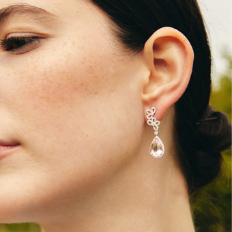 The Petals Collection is the perfect feminine ode to the much-loved tradition of creating art out of flowers. Beautiful ballet-pink morganite gemstones hang from diamond-set petal detailing in these eye-catching earrings, set in 18ct white gold. Perfect for your next special occasion (morganite is approximately 4.74ct, diamond is 0.62ct).