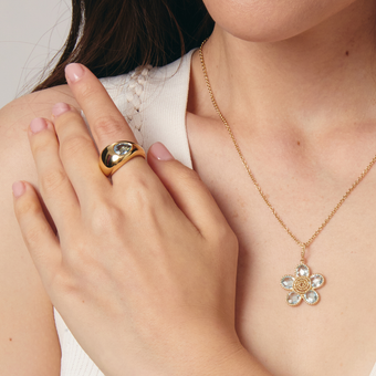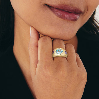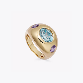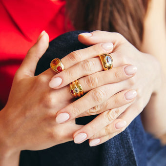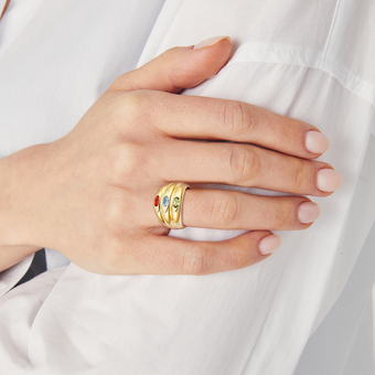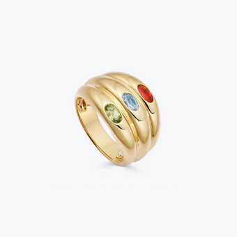 Designed for Every Day: Introducing The Everyday Gold Collection. This curated selection features seven rings – one for each day – alongside matching earrings and a versatile gold link chain necklace and bracelet. Each piece is adorned with sparkling gemstones in Kiki McDonough's signature vibrant colours, creating timeless essentials perfect for any occasion.
