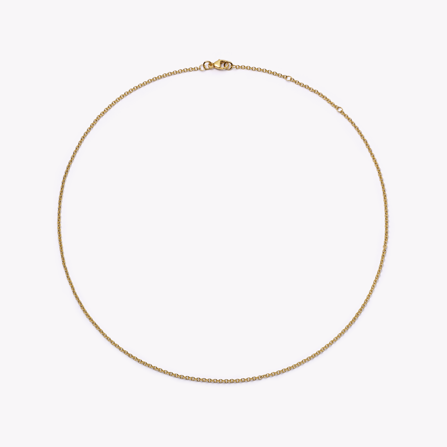 This 18ct yellow gold trace chain is 18inches with an adjustable loop at 17inches and 16inches. Perfect for any of our pendants.