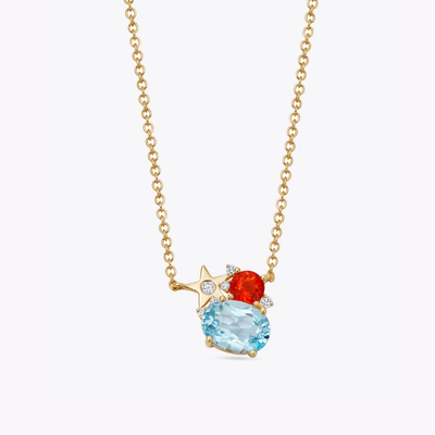 Blue Topaz and Fire Opal Cluster Necklace