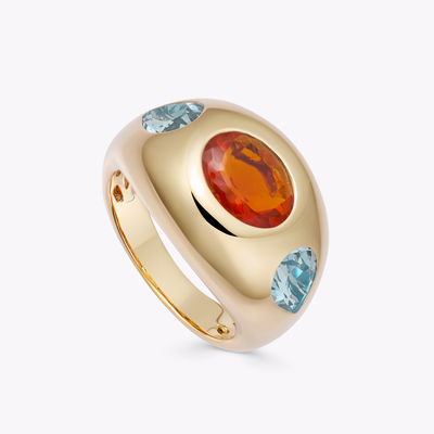 Forget-Me-Not Triple Stone Blue Topaz and Fire Opal Ring