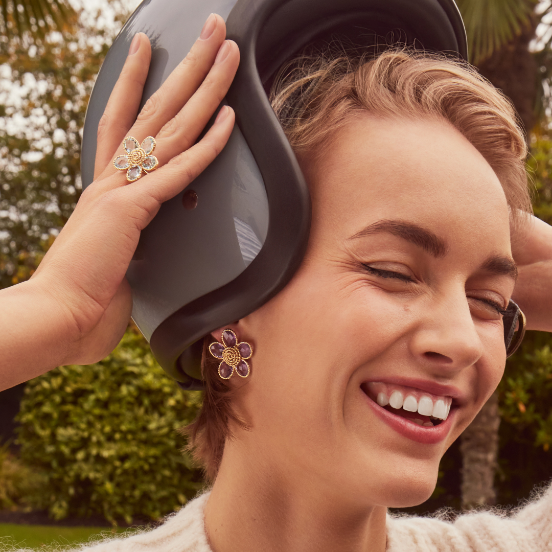 Embrace flower power with these Florence amethyst flower earrings in 18ct yellow gold. A fun and colourful addition to your jewellery box (amethyst is approximately 17.17ct).