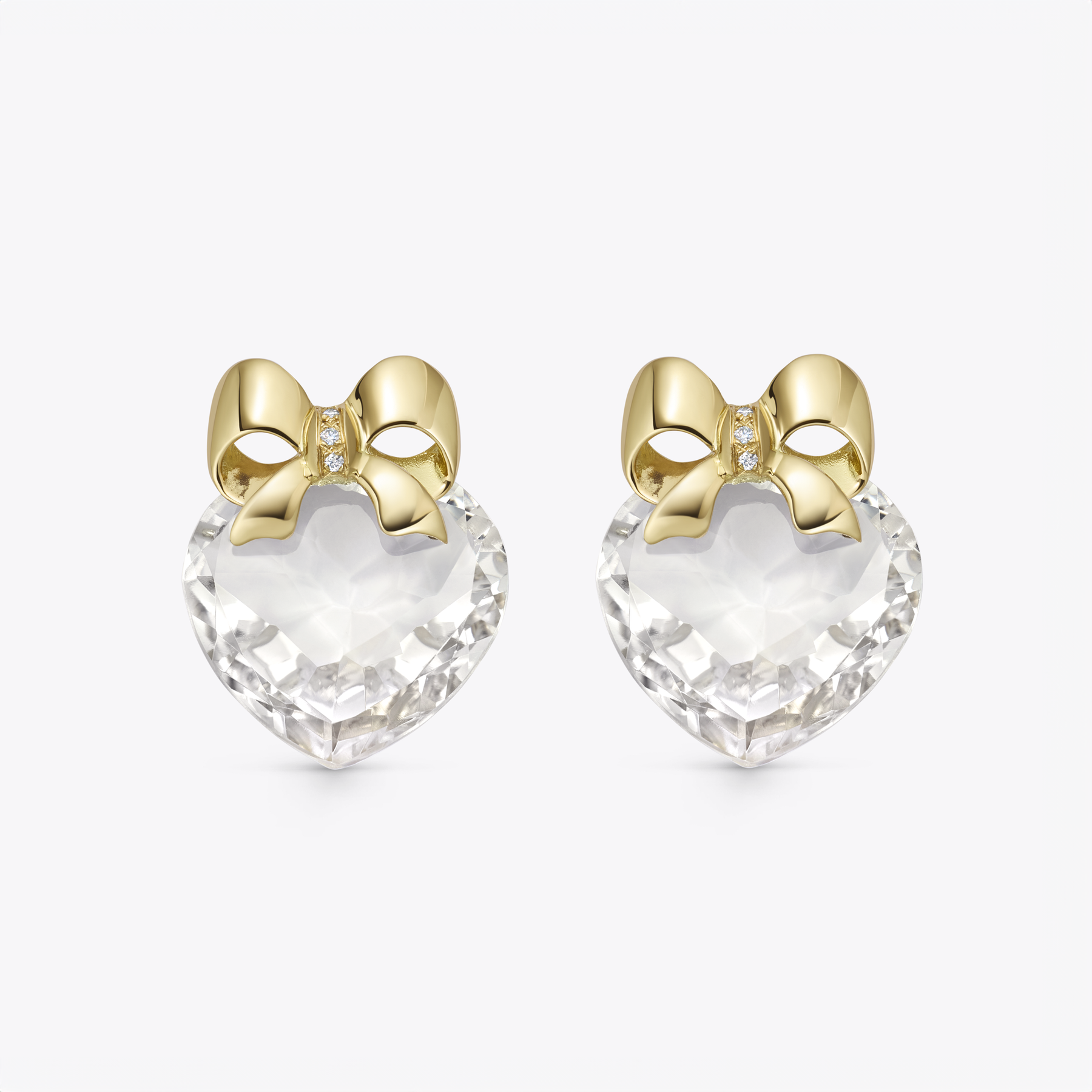 Kiki Retrospective Rock Crystal Heart and Diamond Bow Earrings