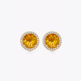 One of Kiki's most popular styles, these simple and delicate earrings can be worn everyday. Each earring features a round Citrine gemstone surrounded by small Diamonds set in 18ct Yellow Gold and can be paired with our matching Grace pendants and rings (Citrine is approximately 2.55ct and Diamond 0.19ct).