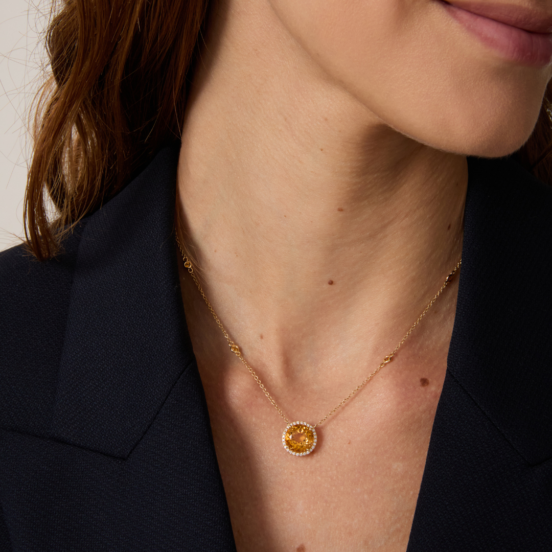 Grace Large Citrine and Diamond Necklace