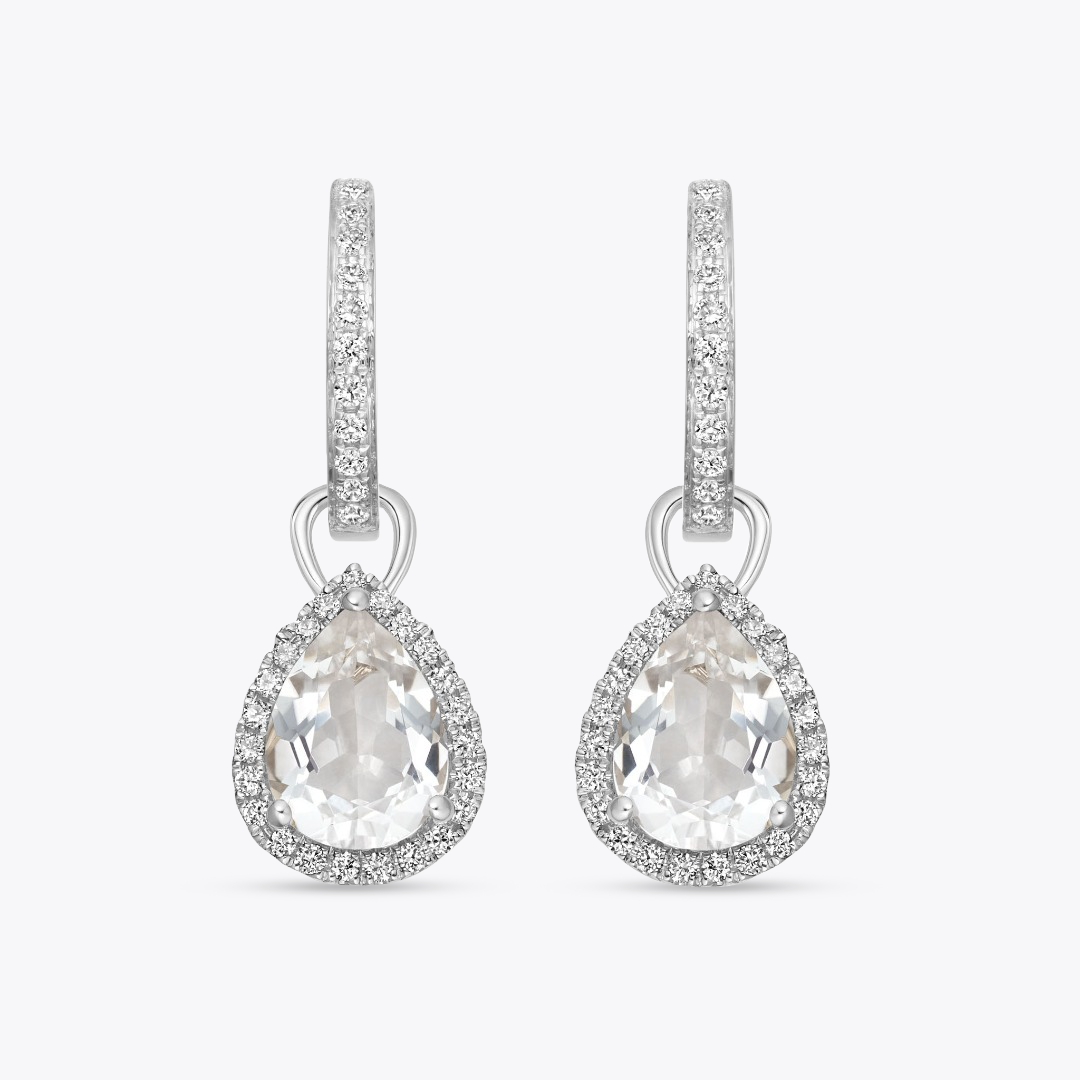 Grace pear White Topaz and Diamond surround detachable drops in 18ct White Gold. (White Topaz is approximately 2.21ct and Diamond is 0.17ct)