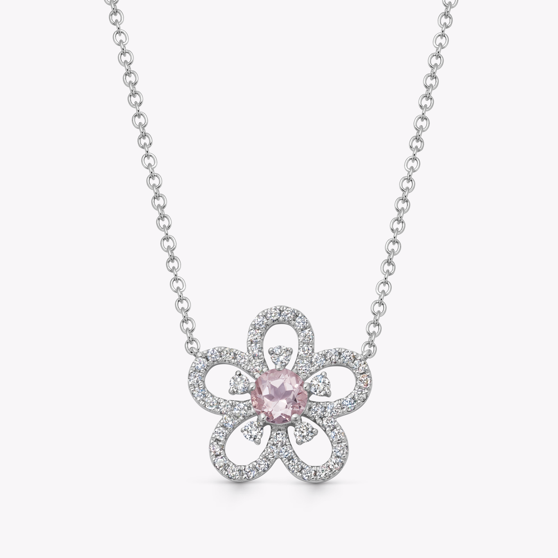 The Petals Collection is the perfect feminine ode to the much-loved tradition of creating art out of flowers. This striking diamond flower necklace with a central morganite gemstone is set in 18ct white gold and will make a charming addition to your jewellery collection (morganite is approximately 0.32ct, diamond is 0.33ct).