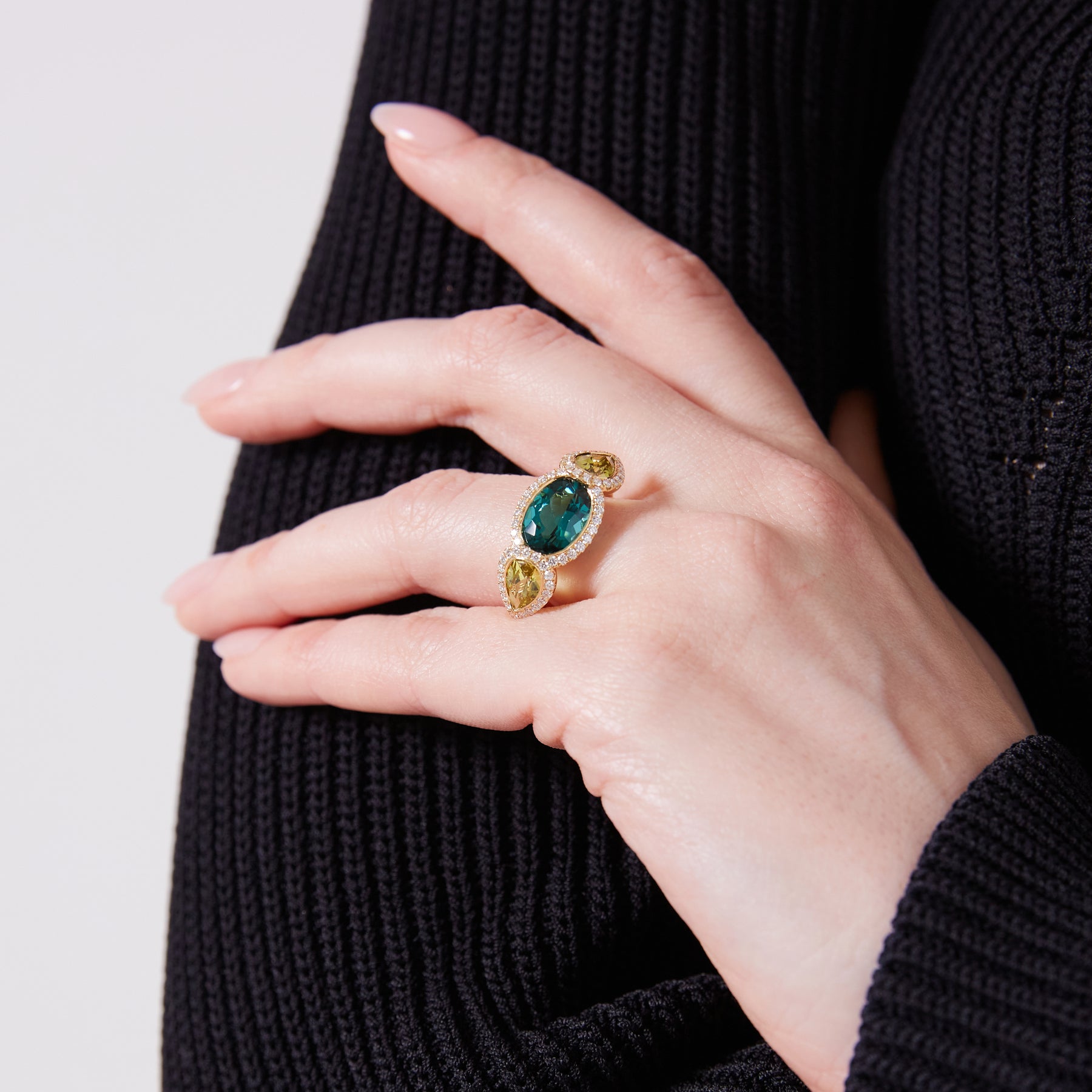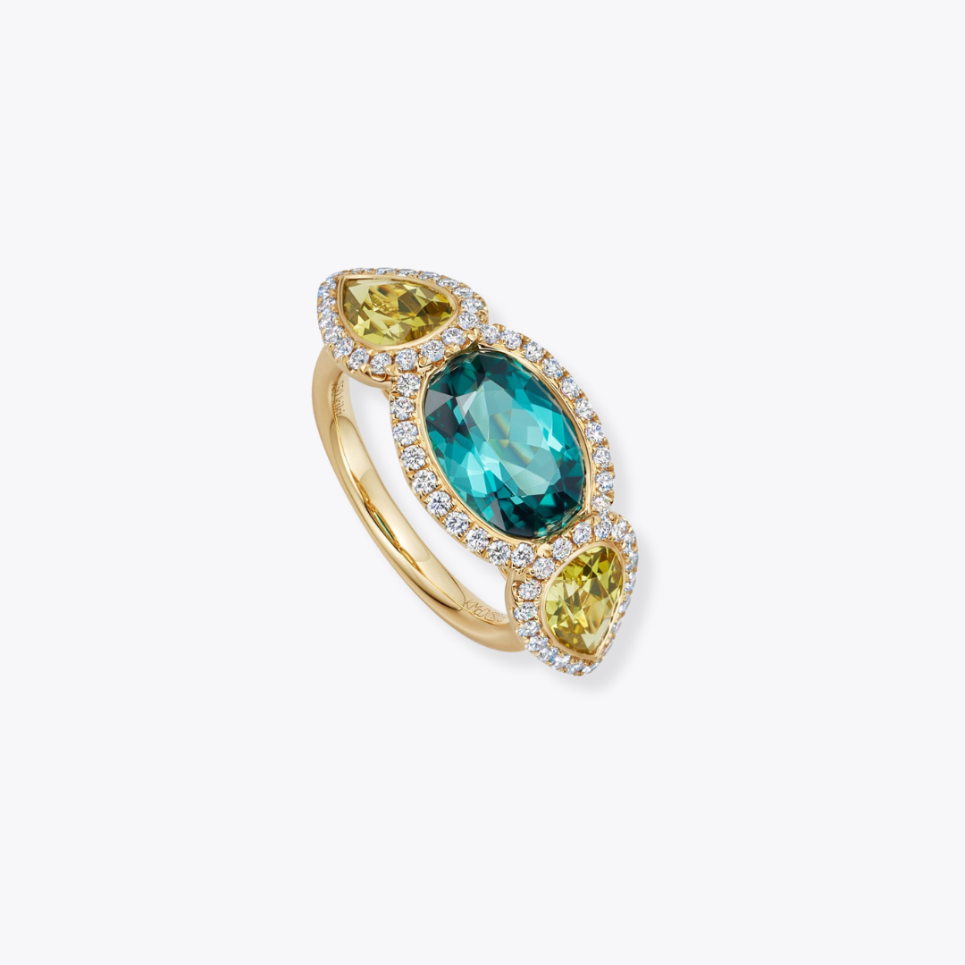 Gold Type18ct Yellow Gold GemstoneGreen Tourmaline|Diamond DimensionsOval Section 14mm in Length, Pear Sections 11.8mm in Length SKURNDGM0328