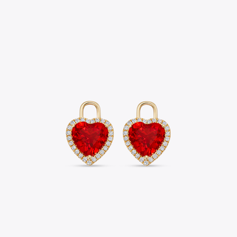 Enhance your jewellery collection with romantic Special Edition Heart-Shaped Fire Opal Detachable Drops, crafted in 18ct gold. Add a touch of opulence to your every day. (Fire Opal is approximately 5.57ct and Diamond is 0.24ct)