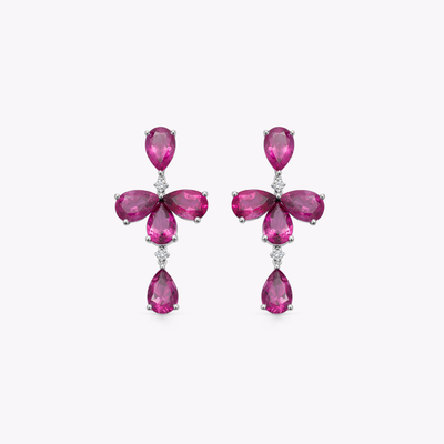Make a statement with these rubellite and diamond bloom earrings in 18ct white gold. A unique addition to any jewellery collection (rubellite is approximately 13.06ct, diamond is 0.18ct).